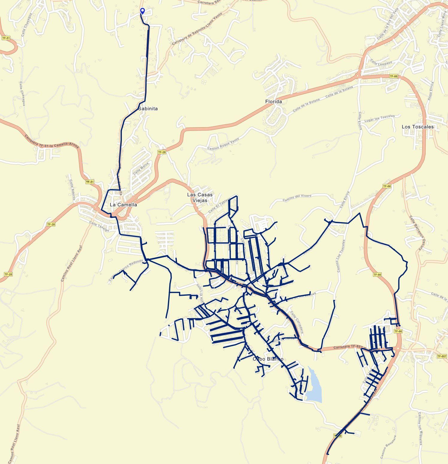 La zona afectada comprende la red que parte del depósito de abastecimiento de Cubillas y recorre la LP-101 desde Bco. Juan Mayor hasta San Vicente, Bco. de Quinteros, Pista Bco. de Juan Mayor y lugar Velhoco de LP-101 hacia la cumbre.