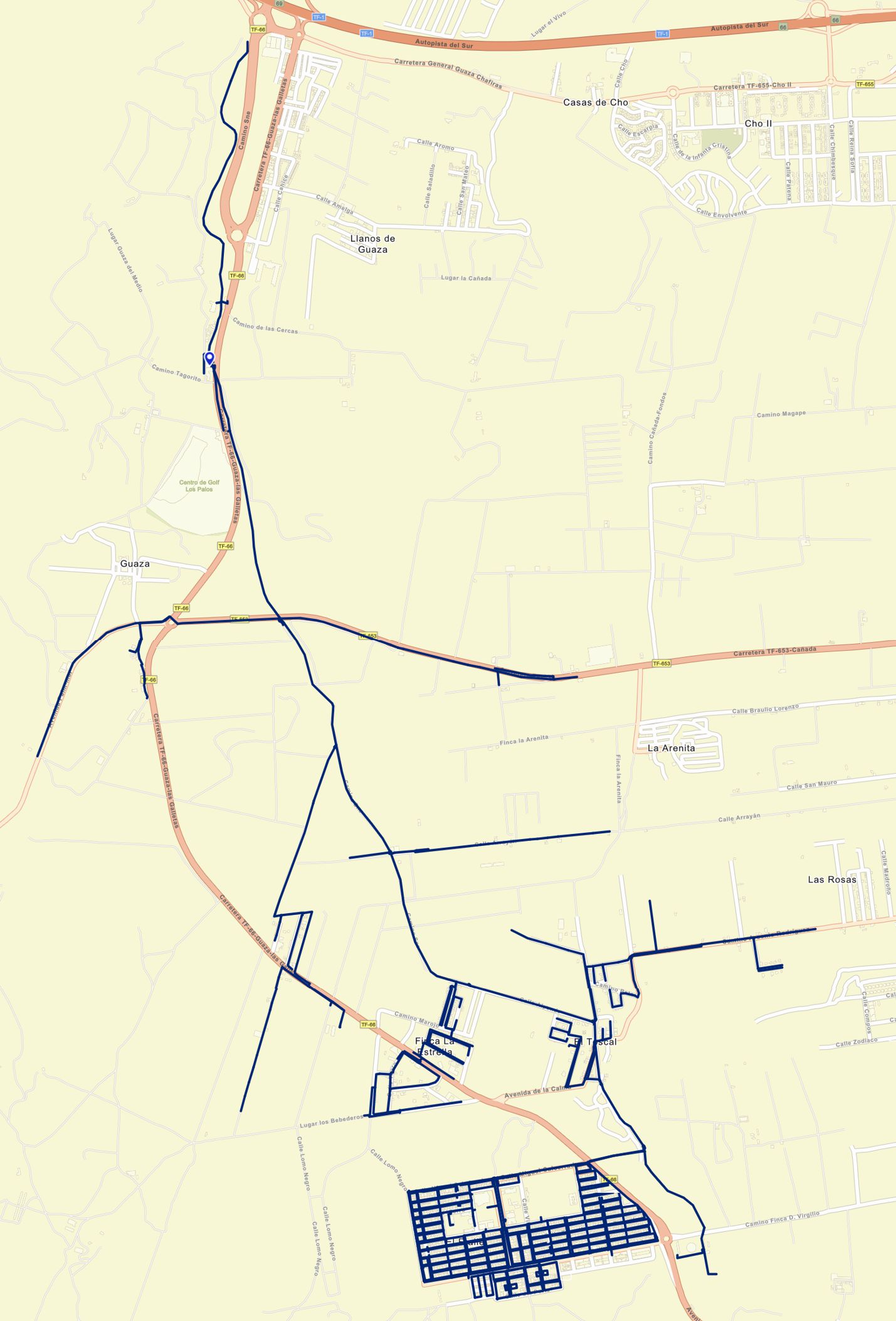 La zona afectada comprende la red que parte del depósito de abastecimiento de Cubillas y recorre la LP-101 desde Bco. Juan Mayor hasta San Vicente, Bco. de Quinteros, Pista Bco. de Juan Mayor y lugar Velhoco de LP-101 hacia la cumbre.